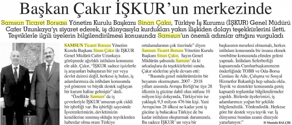 Başkan Çakır İŞKUR'un Merkezinde