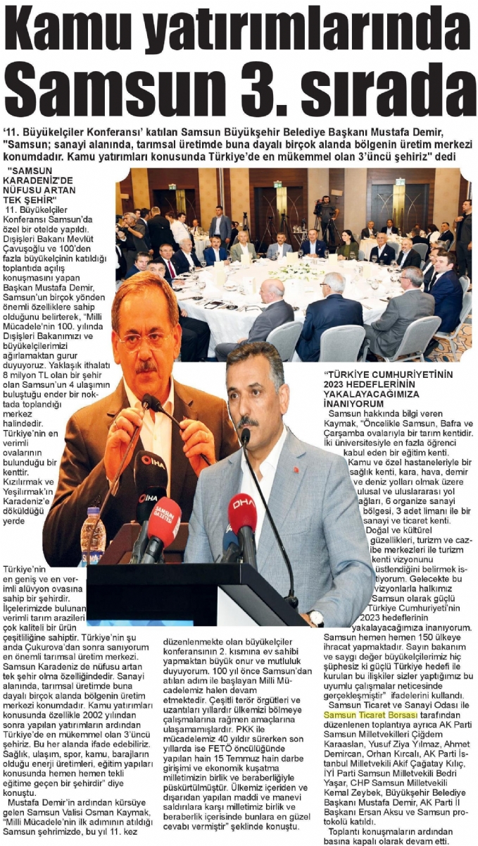 Kamu Yatırımlarında Samsun 3.Sırada