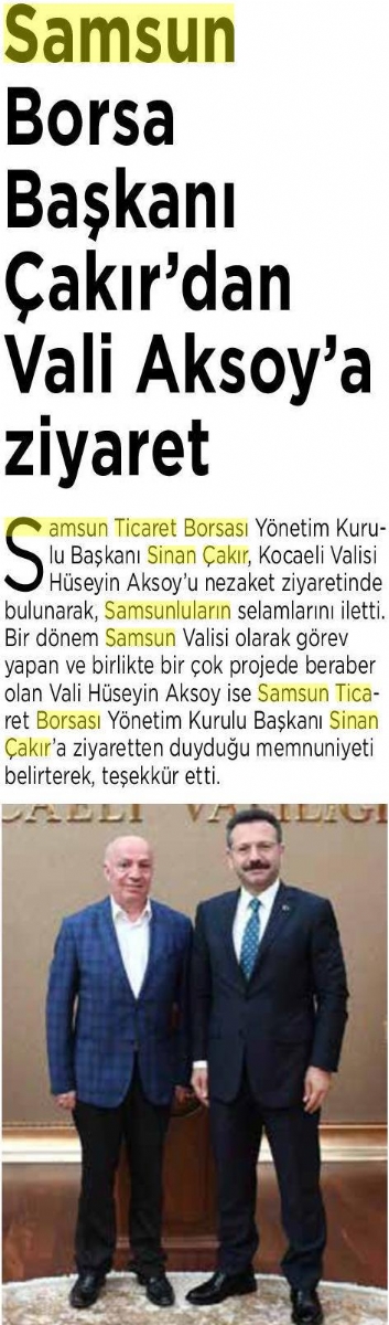 Samsun Borsa Başkanı Çakır'dan Vali Aksoy'a Ziyaret