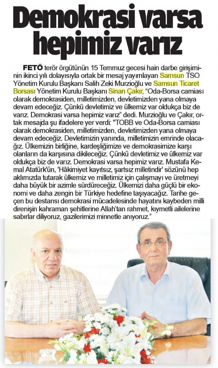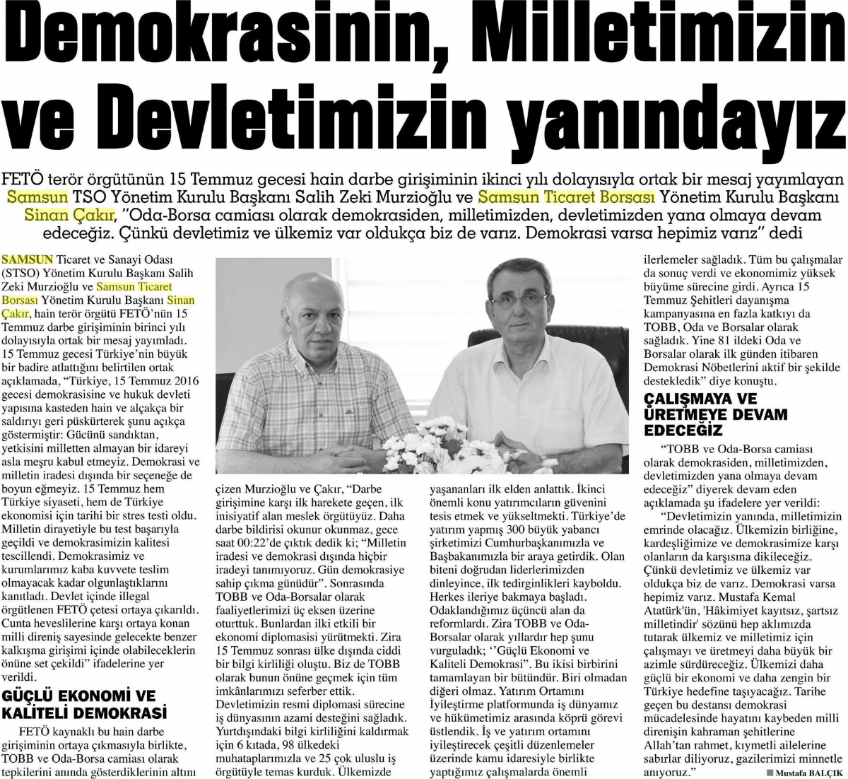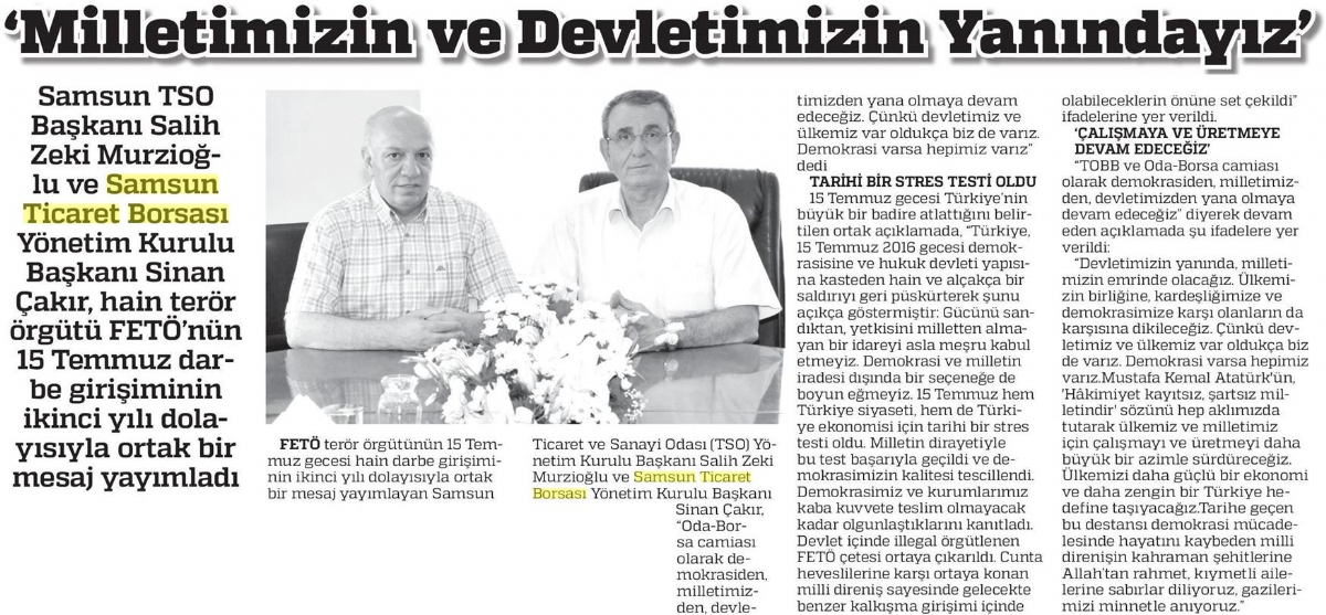 Demokrasinin, Milletimizin ve Devletimizin Yanındayız
