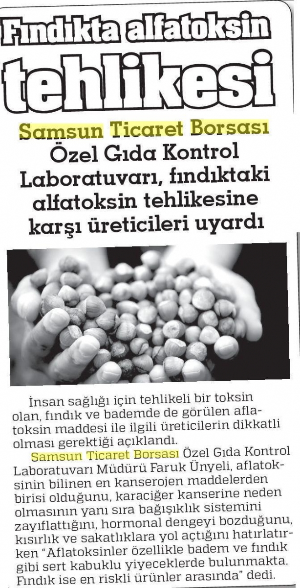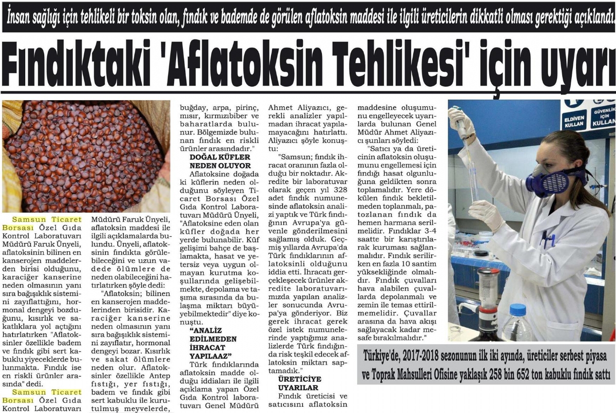 Fındık İçin Aflotoksin Uyarısı
