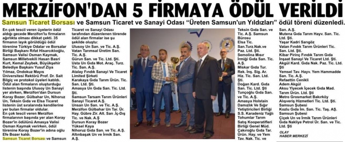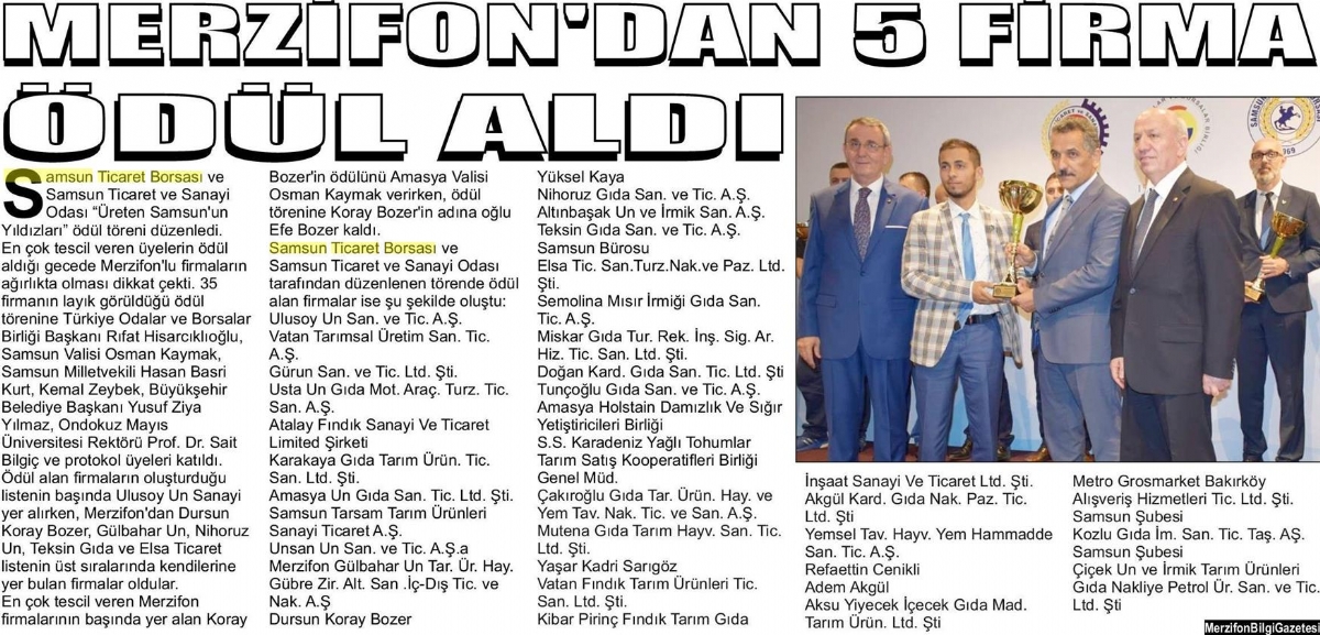 Merzifon'dan 5 Firma Ödül Aldı