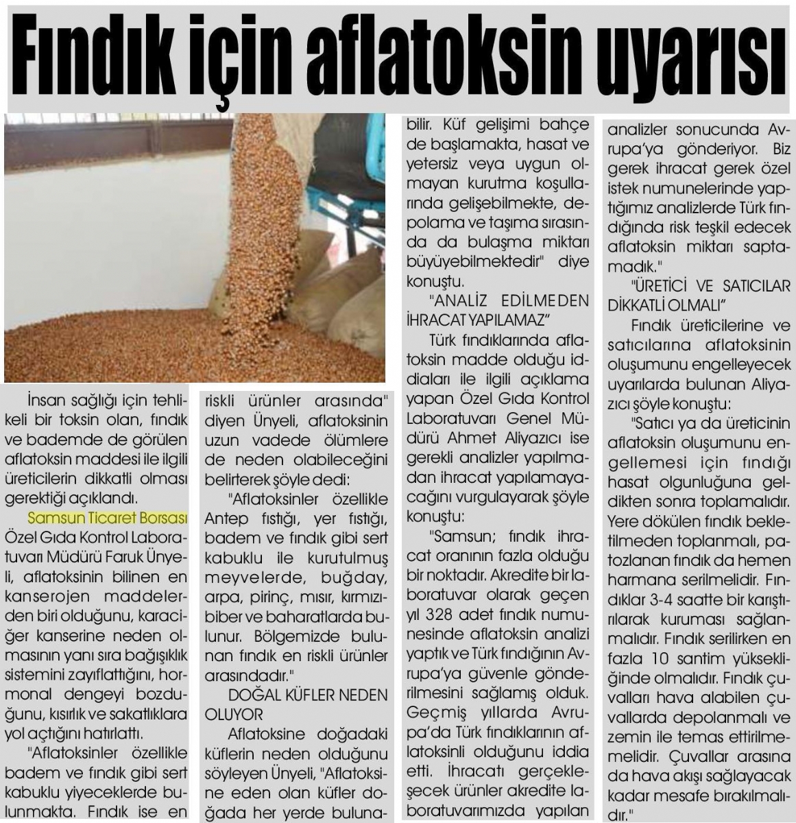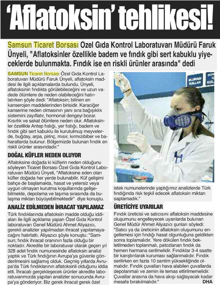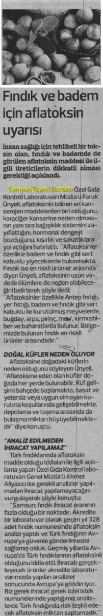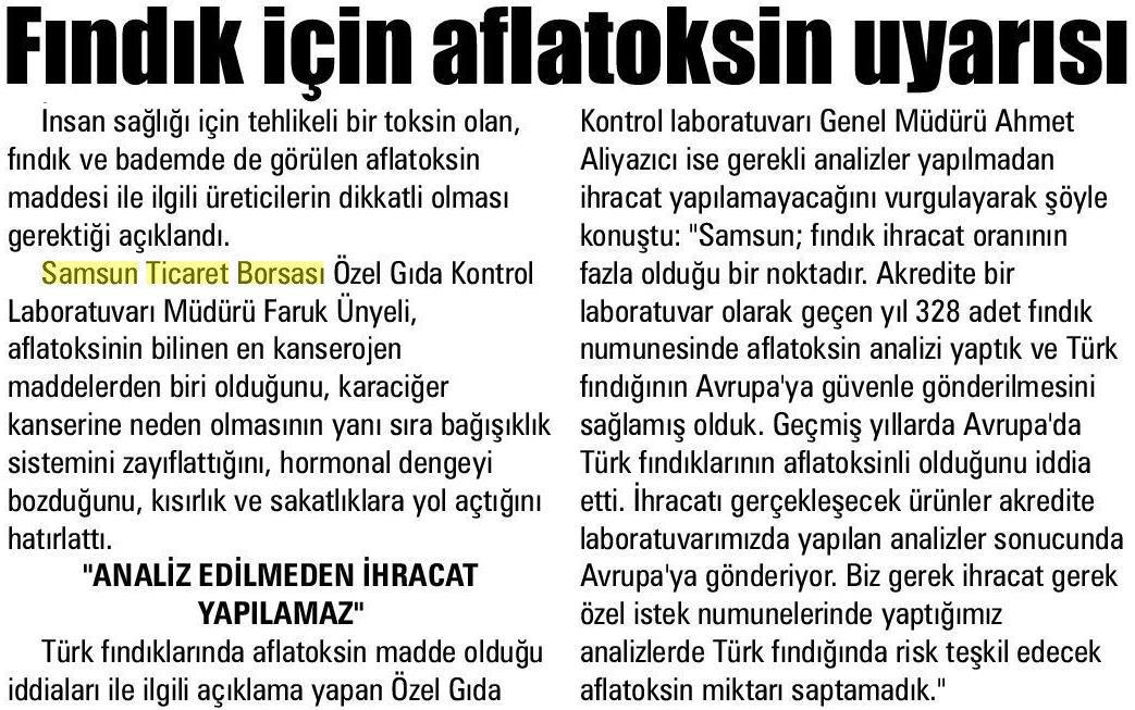 Fındık İçin Aflotoksin Uyarısı