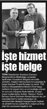 Karadeniz'de Bir İlk Ticaret Borsasına Kalite Belgesi