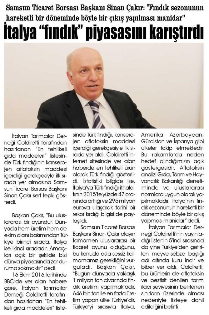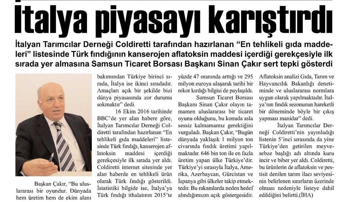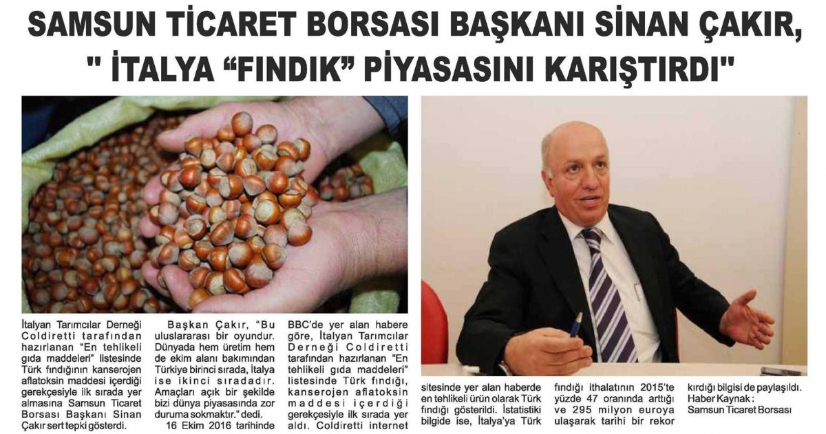 Samsun Ticaret Borsası Başkanı Sinan Çakır, İtalya Fındık Piyasasını Karıştırdı
