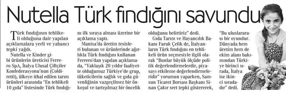 Nutella Türk Fındığını Savunduk