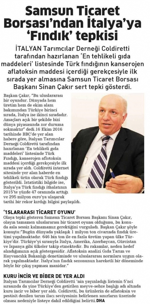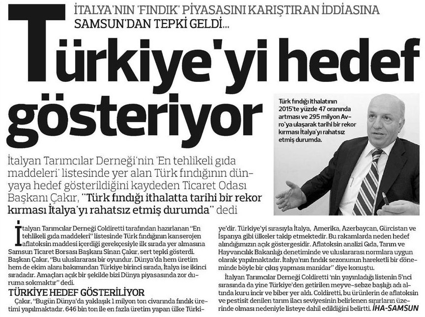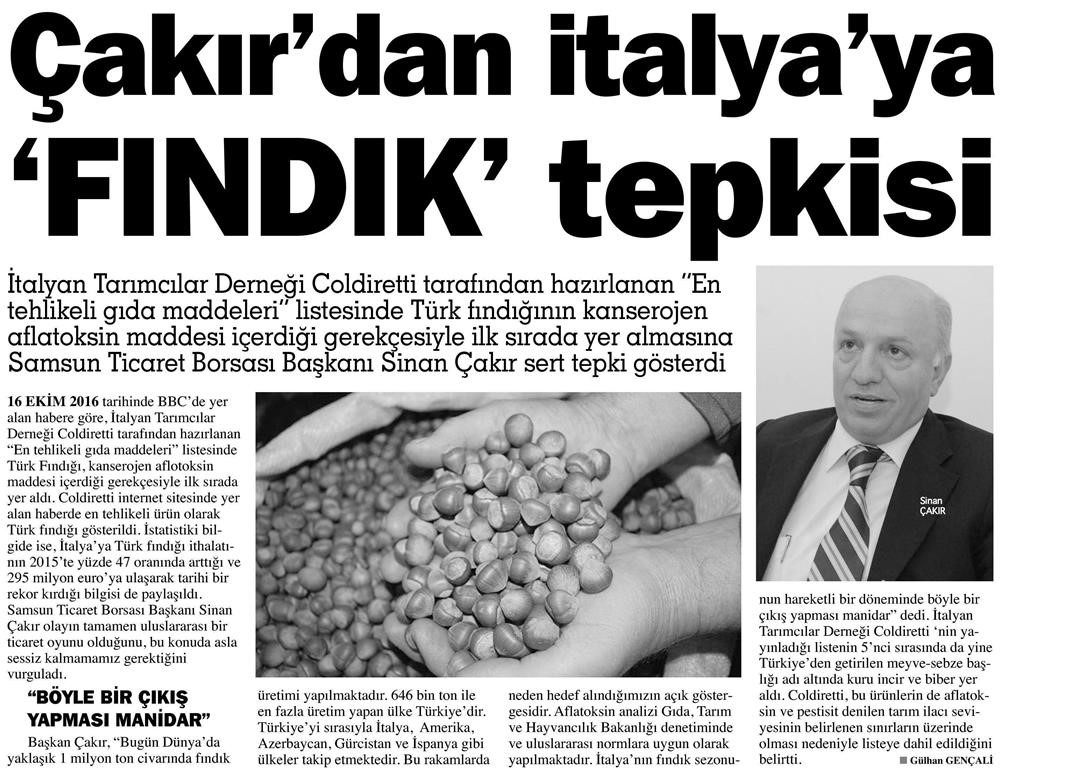 Çakır'dan İtalya'ya Fındık Tepkisi