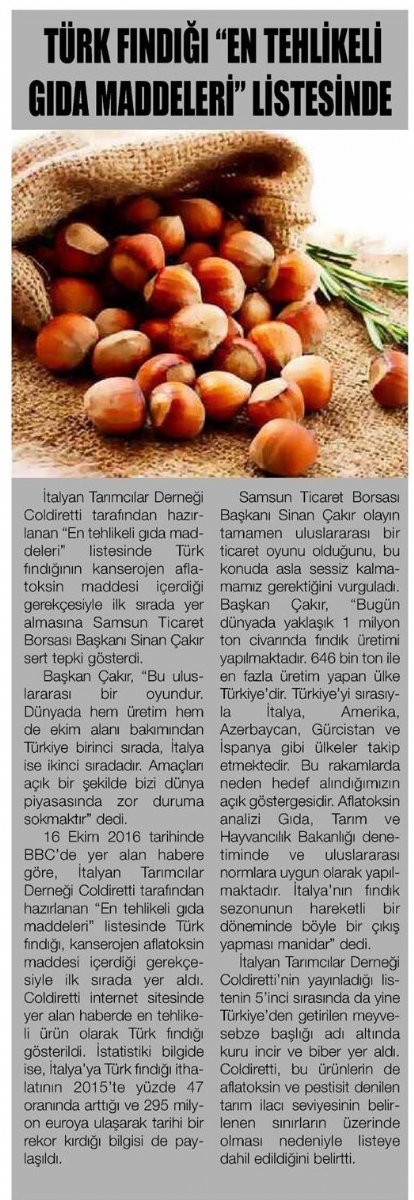 Türk Fındığı En Tehlikeli Gıda Maddeleri Listesinde