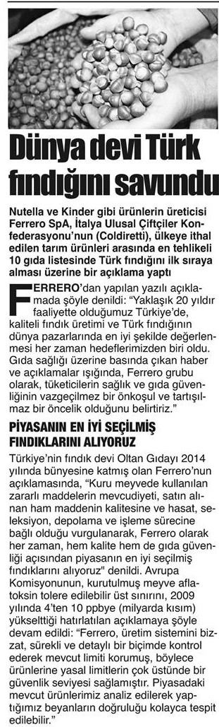İtalya'ya ' Fındık Tepkisi