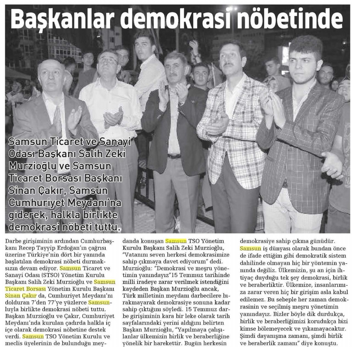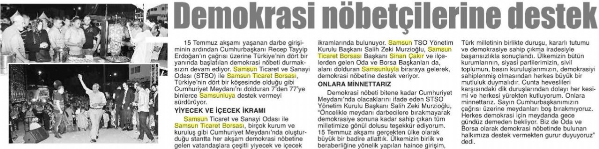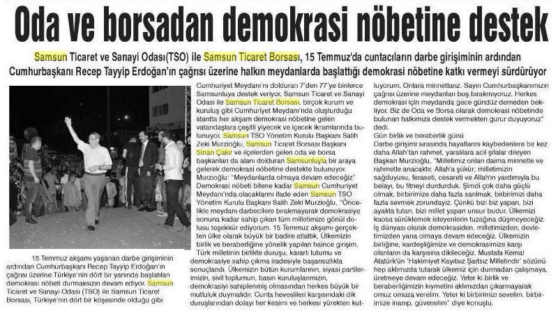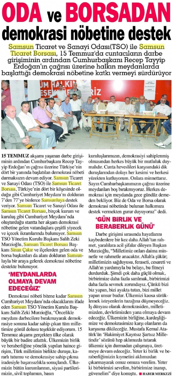 Oda ve Borsadan Demokrasi Nöbetine Destek
