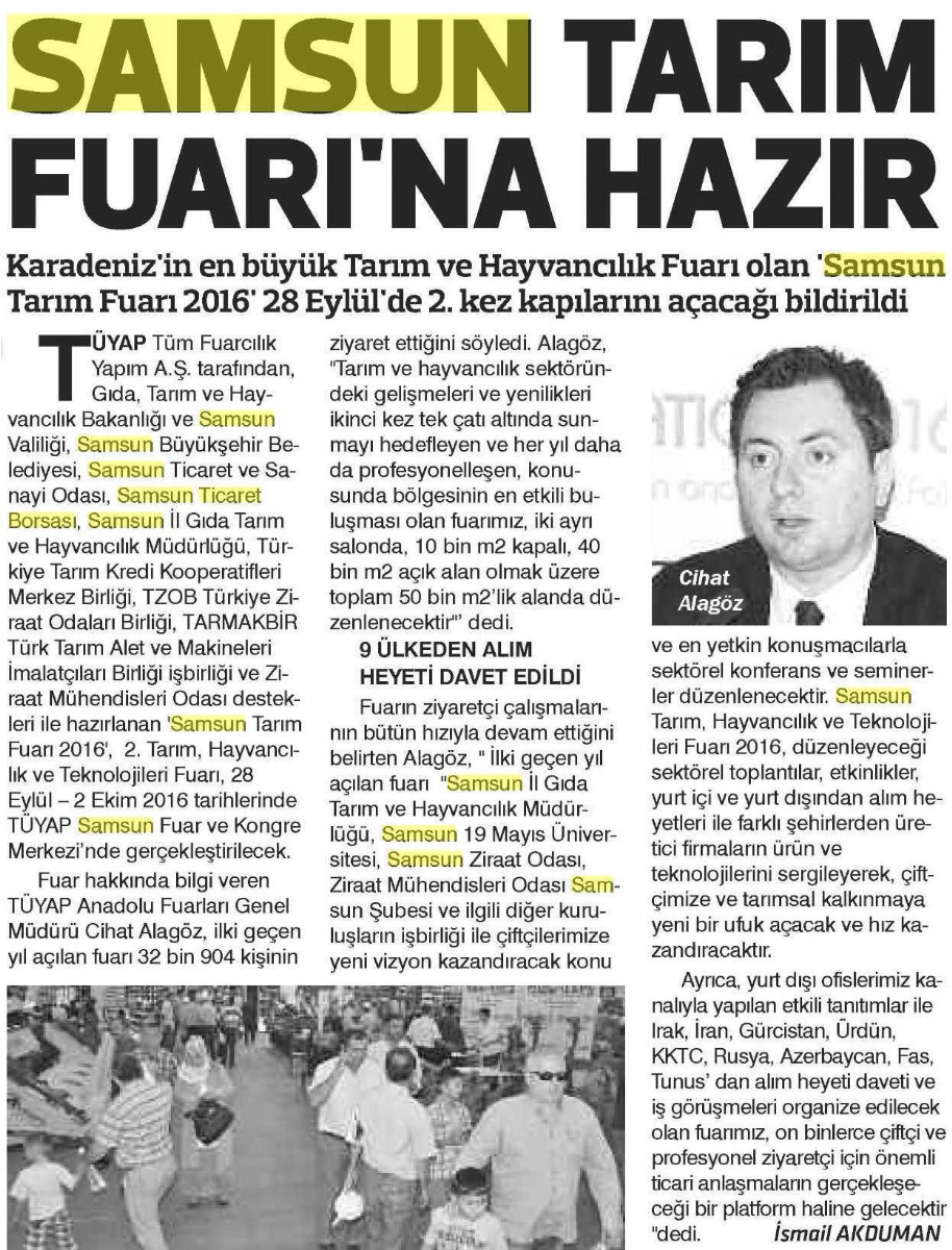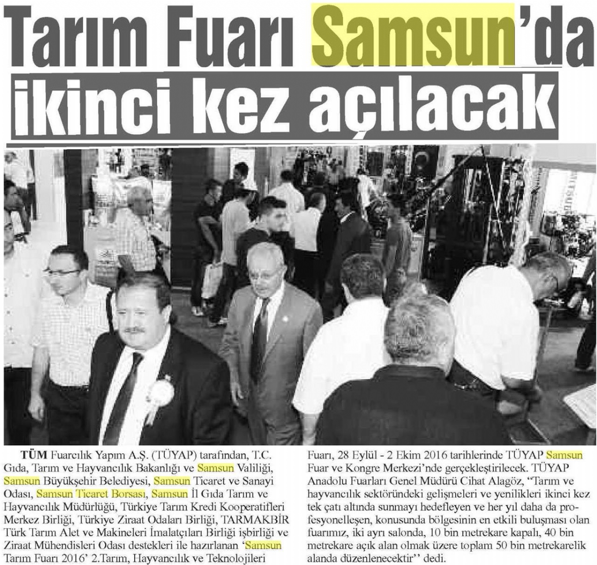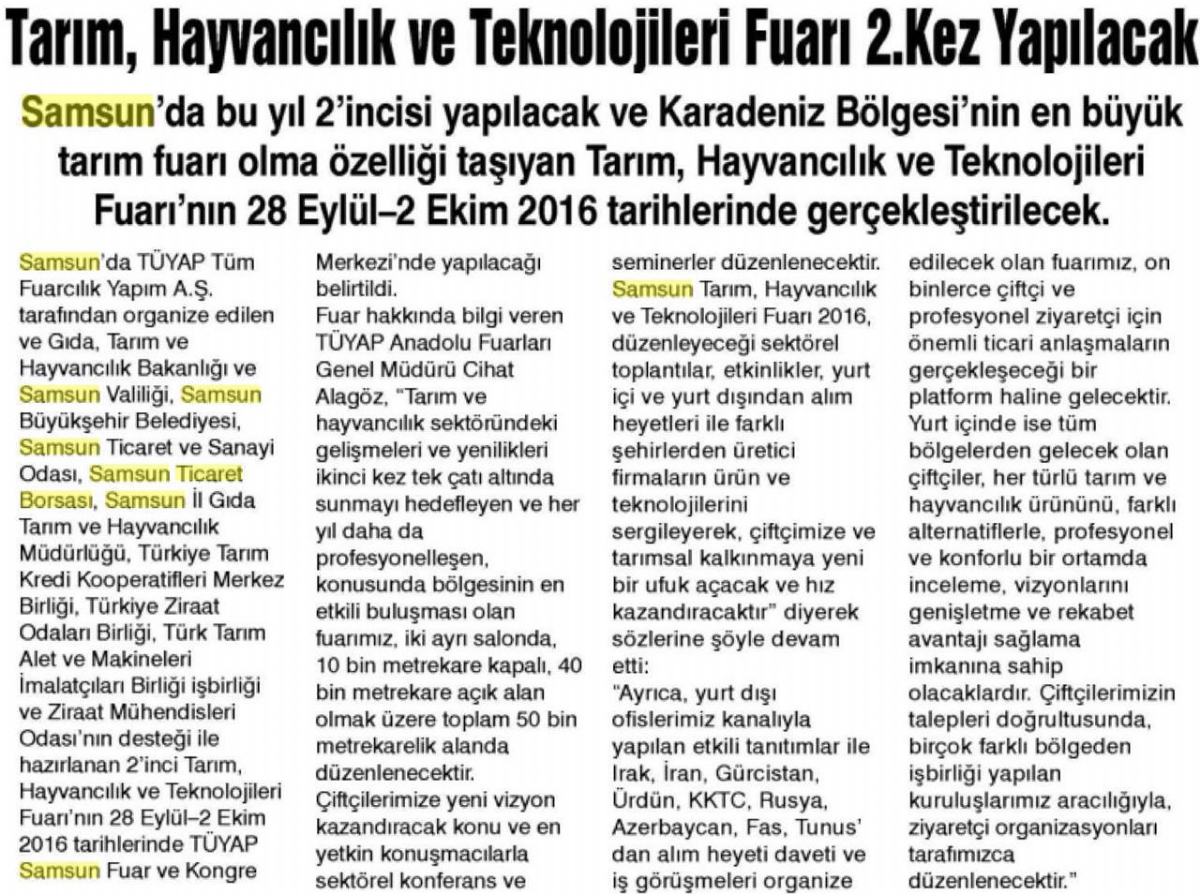 Tarım Fuarı Samsun'da İkinci Kez Açılacak