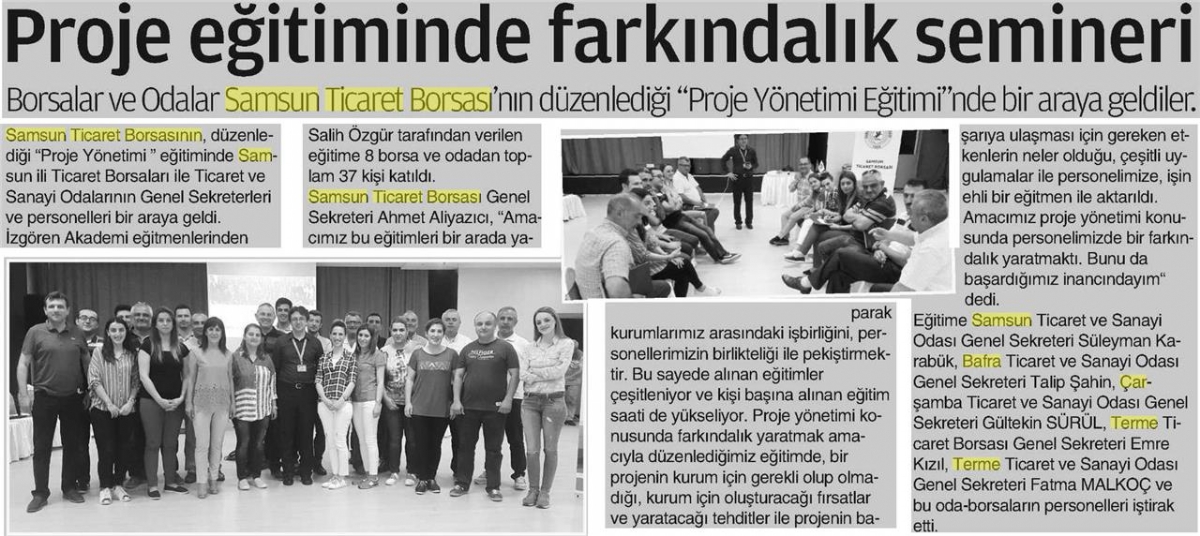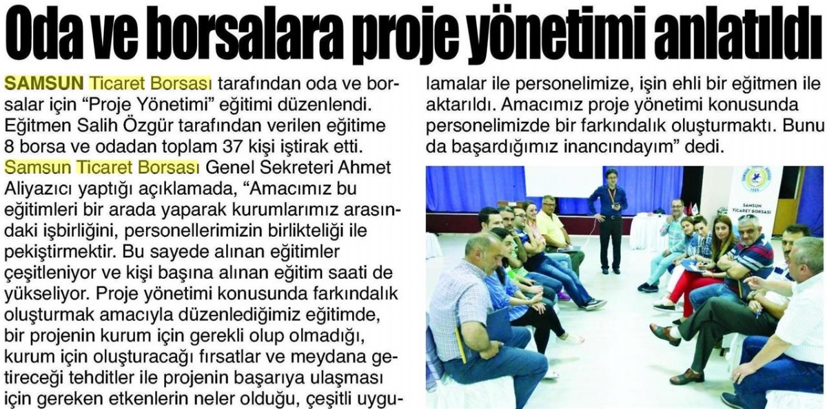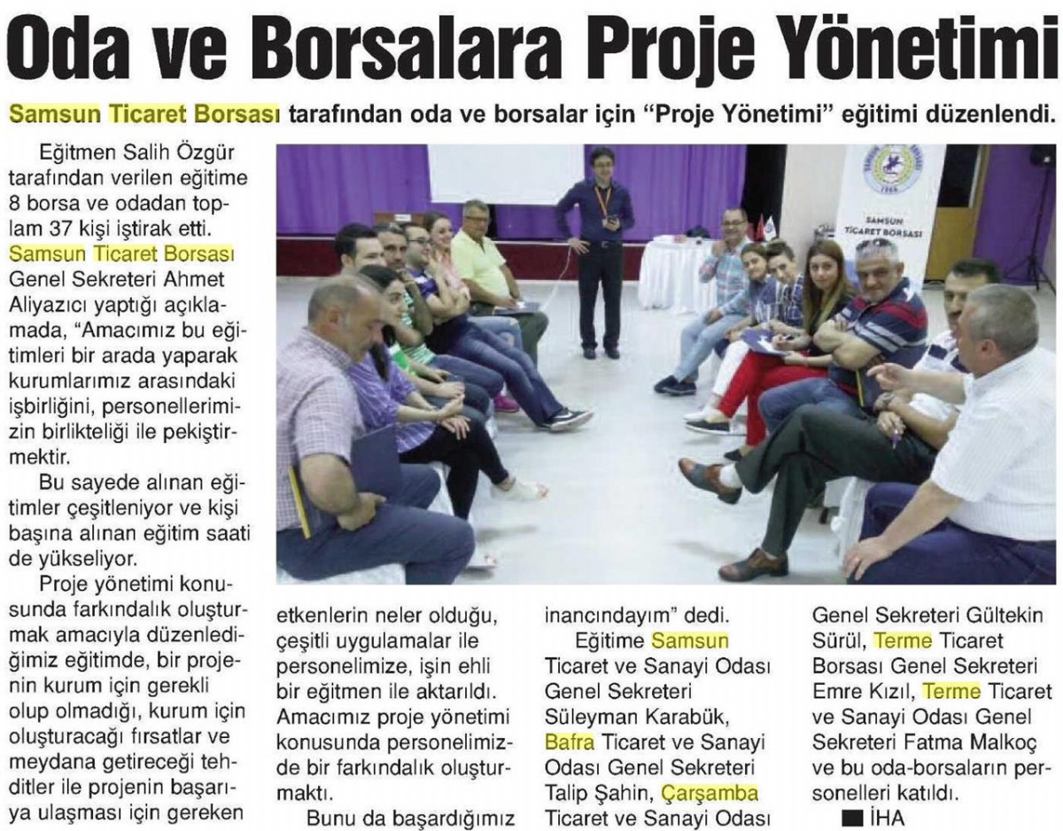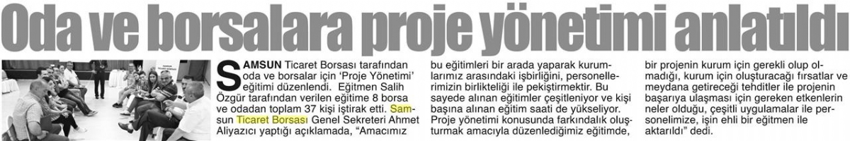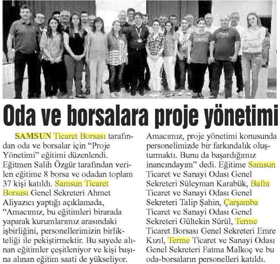 Borsalar ve Odalar Samsun Ticaret Borsası'nın Düzenlediği ' Proje Yönetimi Egitimi'nde Bir Araya Geldiler