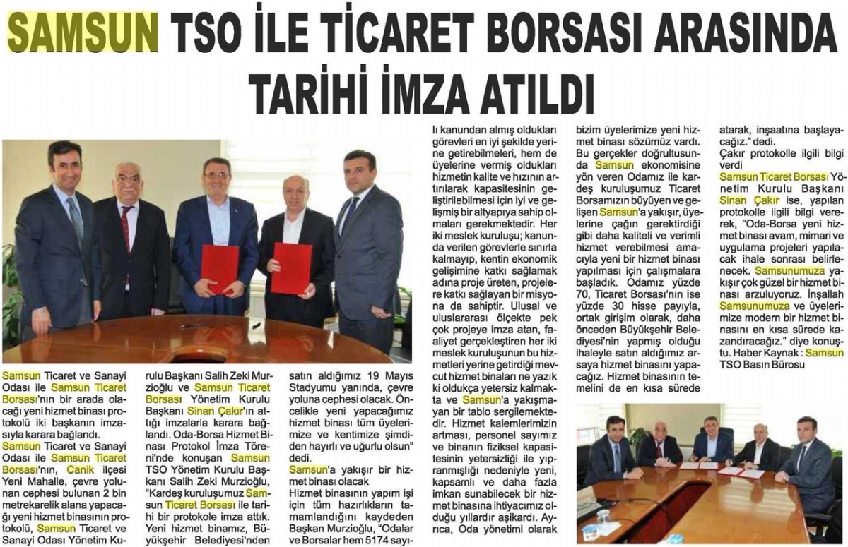Samsun Tso ile Ticaret Borsası Arasında Tarihi İmza