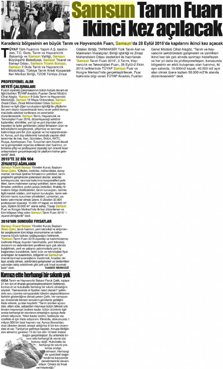 Samsun Tarım Fuarı İkinci Kez Açilacak