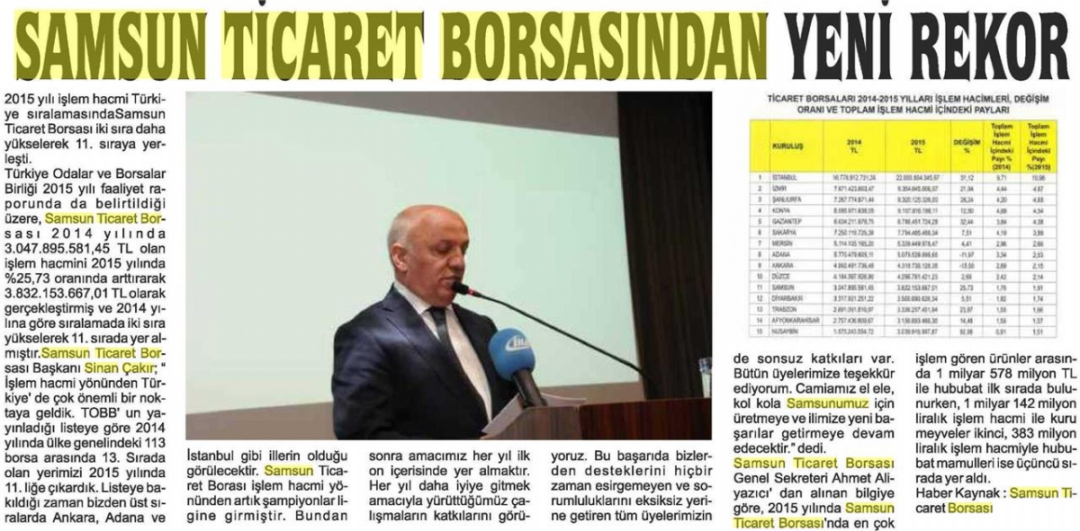 Samsun Ticaret Borsasından Yeni Rekor
