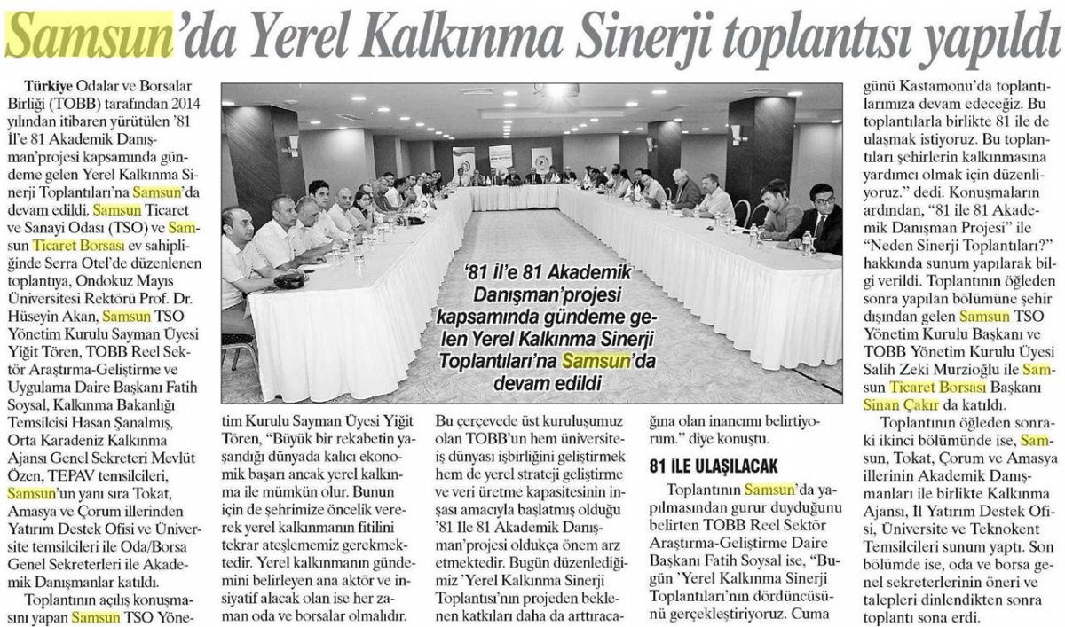 Samsun'da Yerel Kalkınma Sinerji Toplantısı Yapıldı