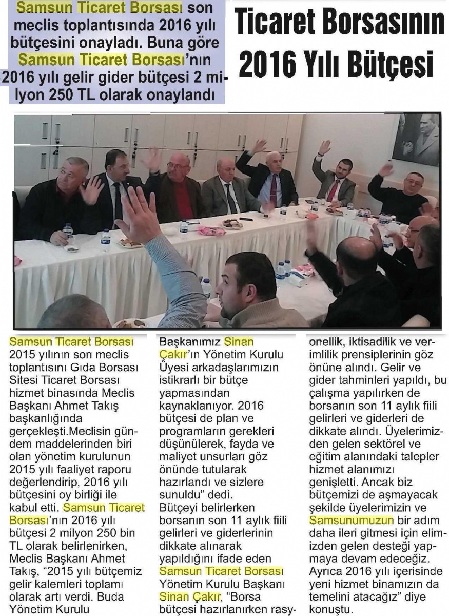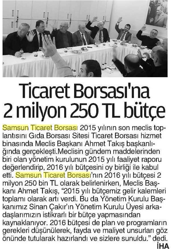 Ticaret Borsa'sının 2016 Yılı Bütçesi