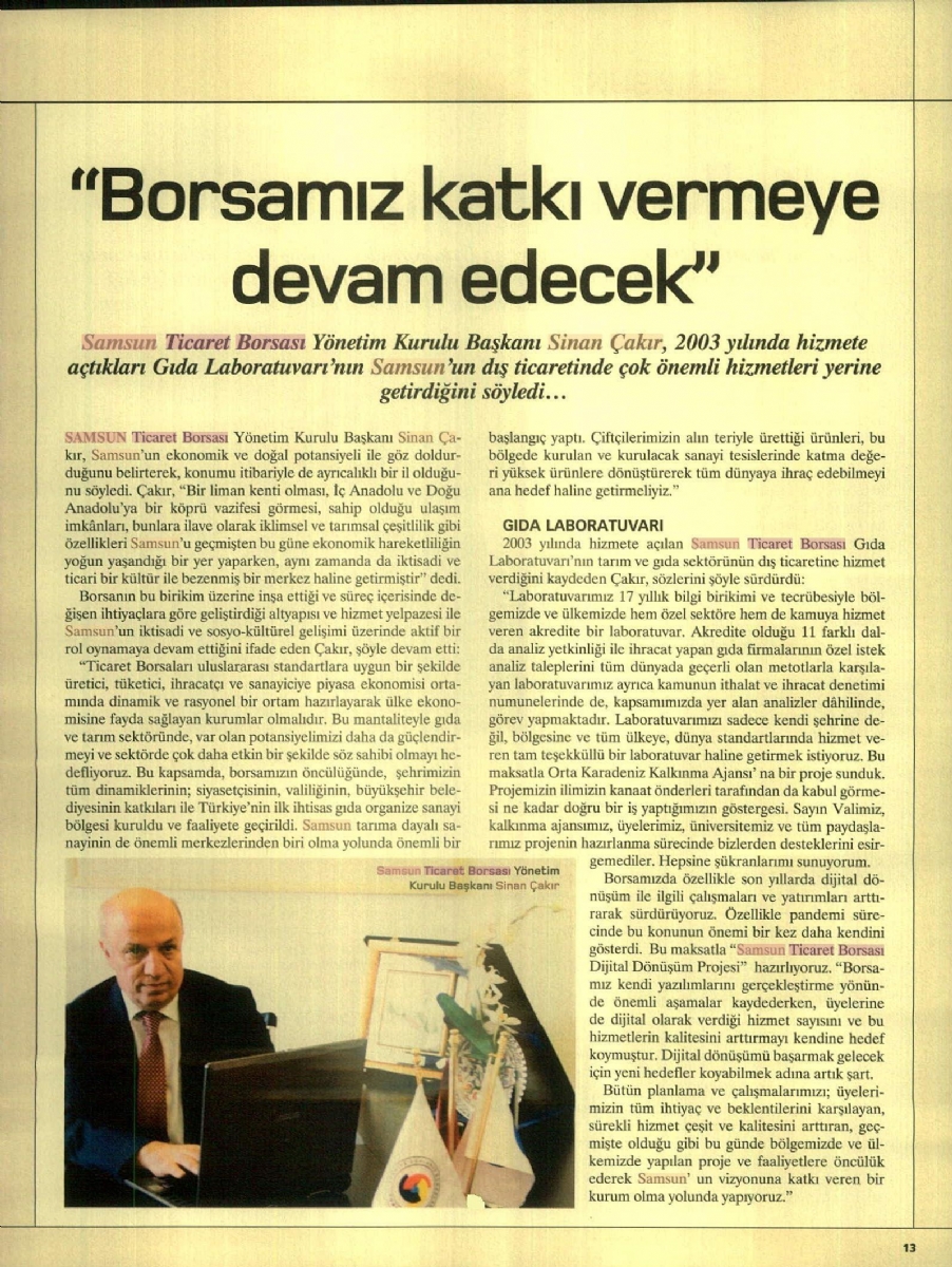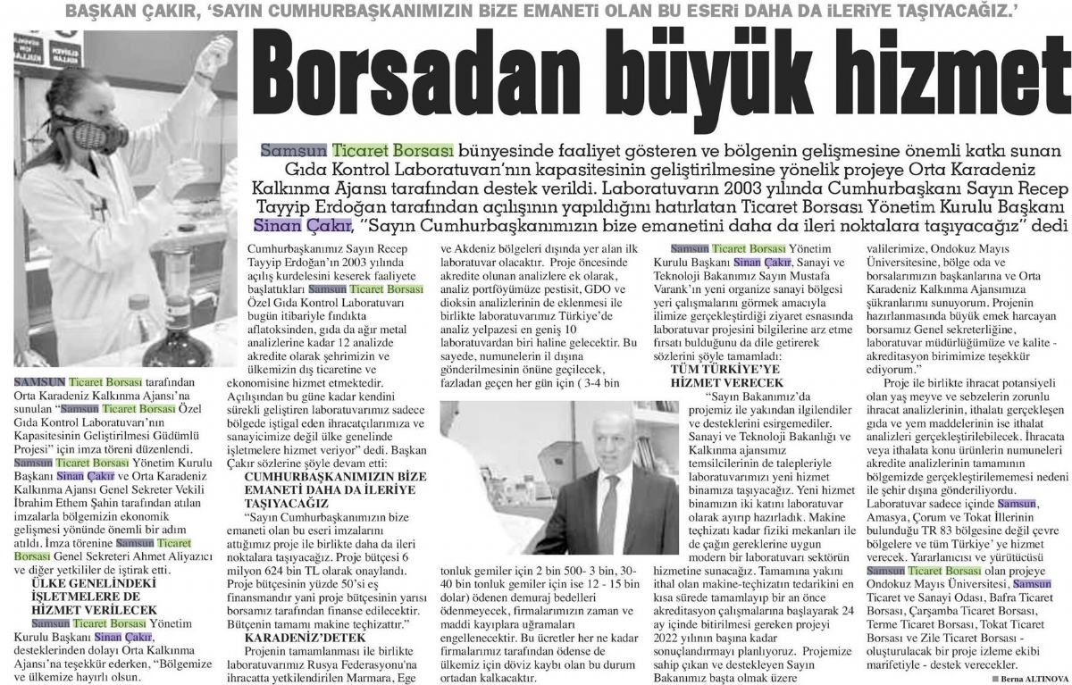 Samsun Ticaret Borsası'ndan Özel Gıda Kontrol Laboratuvarı