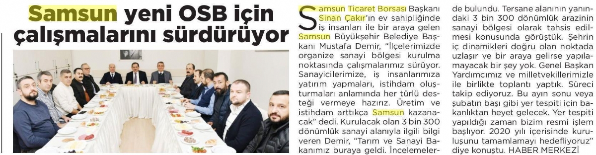 Samsun Yeni Osb İçin Çalışmalarını Sürdürüyor