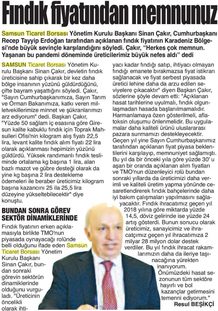 Fındık Fiyatından Memnunuz